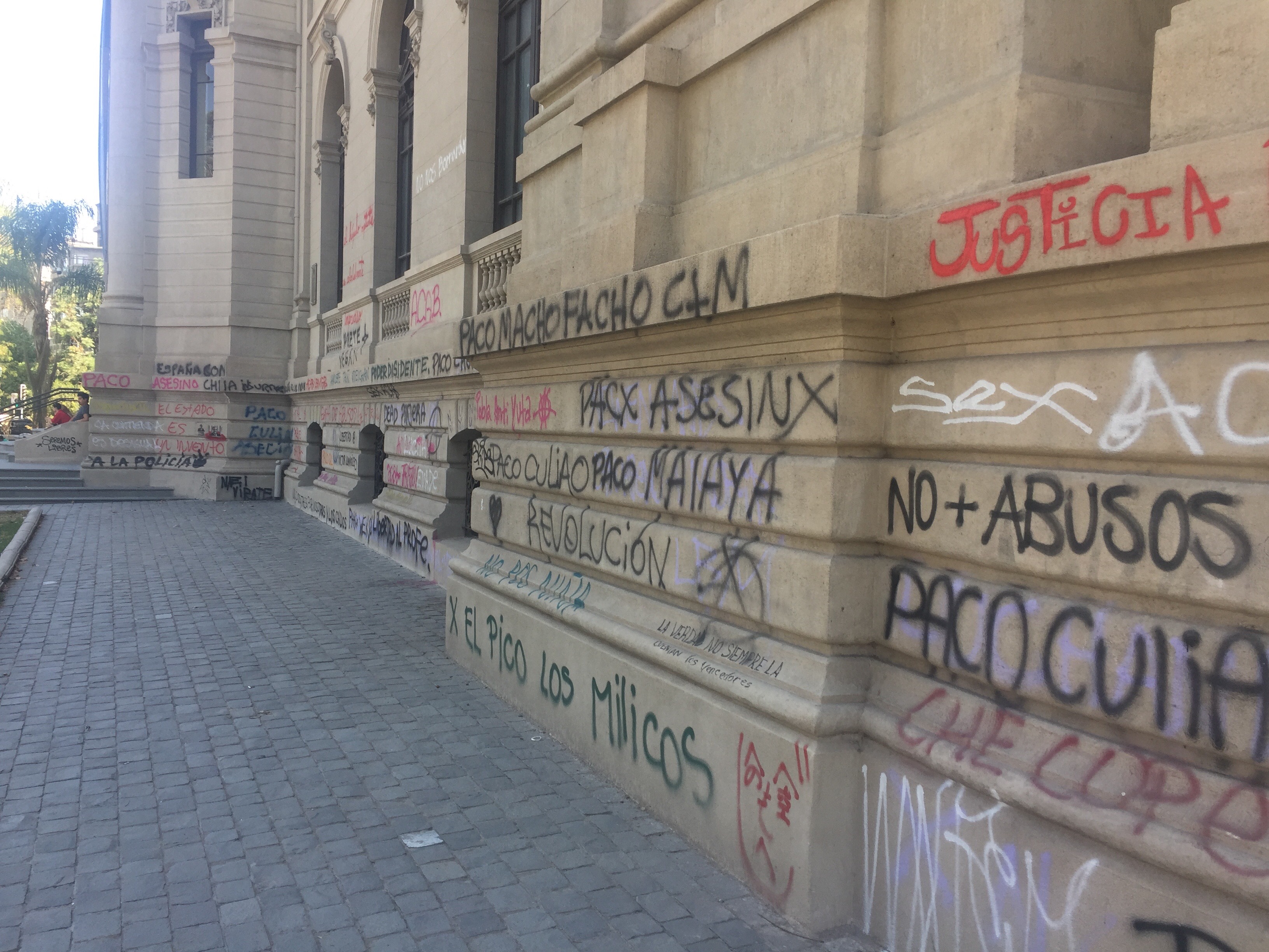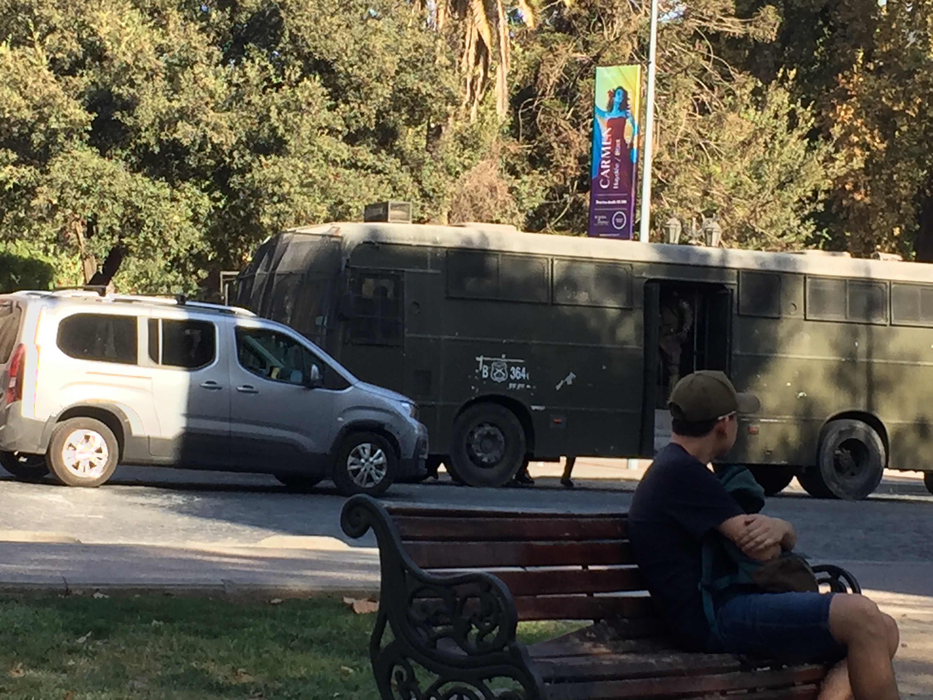 In November of 2019, this city was devastated by dissidents who took to the streets to protest. Our retirees have been known to protest whilst marching from Trades Hall chanting in their red T-shirt’s however these Santiago protests involved burning 34 metro stations, destroying supermarkets, smashing traffic signals and a lotta graffiti. The protests still happen but now each Friday twilight. So very thoughtful however Mr and Ms X found themselves in the middle of an impromptu one when 30 young people racing on foot charged past them as 2 police RIOT buses and 2 police support vehicles turned up. One protester got some rocks and started throwing them at the vehicle. The Chilean-SWAT team, about 20 in each bus then got out. The impromptu event soon fizzled. There’s many public buildings and monuments that are right in the centre of the city that are covered with graffiti and messages. They seem to be anti- everything including vegans!