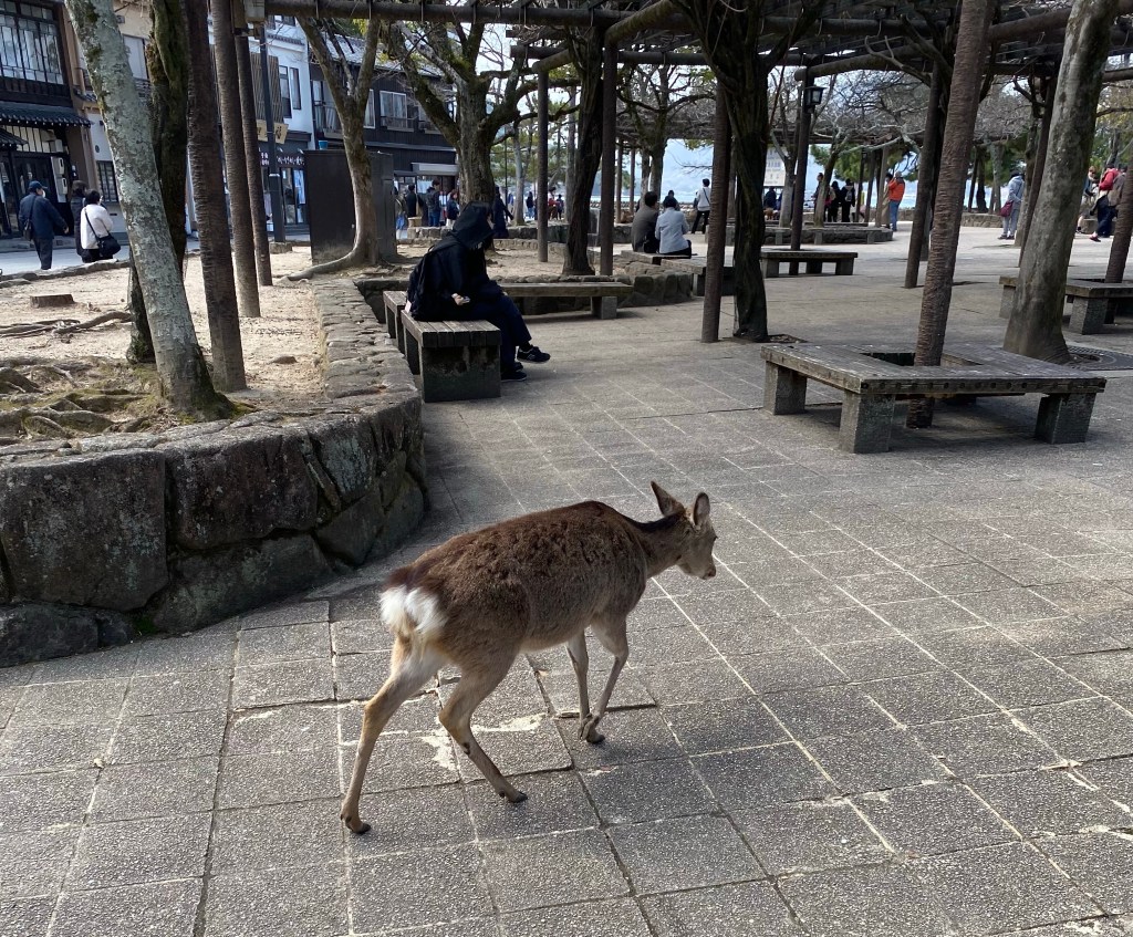 Miyajima Island is a place worth visiting. As our two stepped off the ferry they were greeted by the welcoming party- a family of roaming deer.