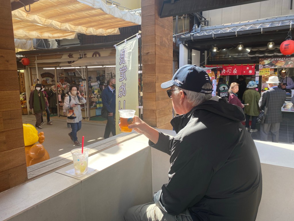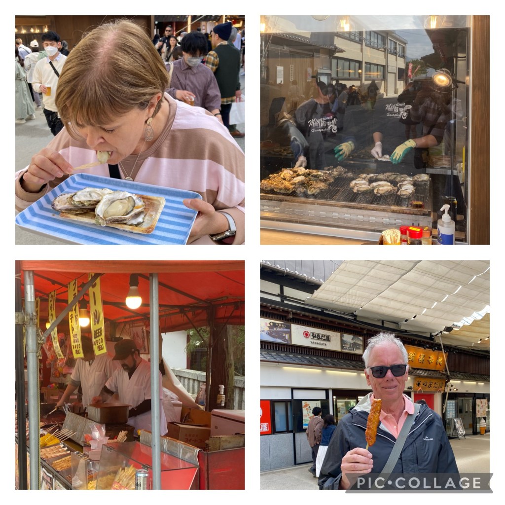 Now if you are wondering what you do there it is very simple. You wander and you eat an assortment of island specialities as you try to avoid the overly friendly deer who want you to share the squid on a stick, chicken yakatori, pork skewers, okiminayaki skewers and grilled oysters that are shucked right in front of you. There is also a good coffee to be found here in a speciality coffee place!