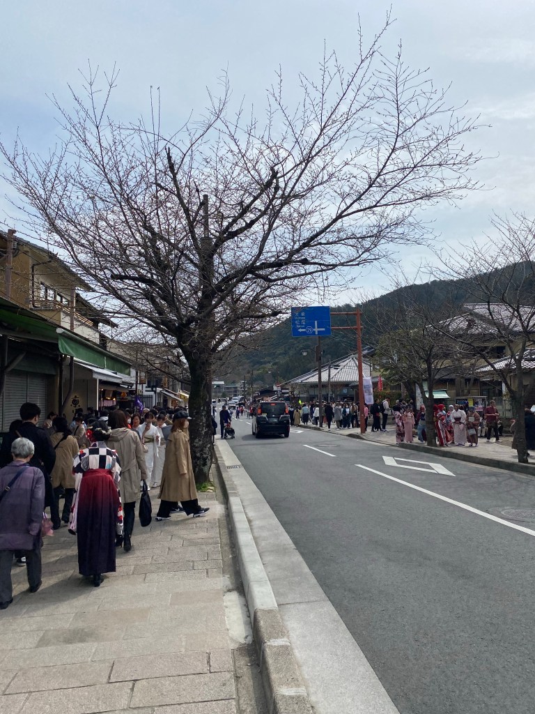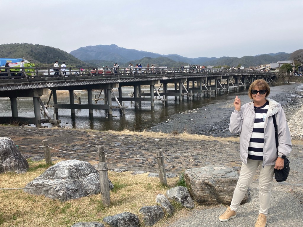 A wander through the Main Street reminded our travellers of Lorne in the summer! All the crowds this time were heading not to a beach but to their special bridge….. The Togetsu-Kyo bridge happens to be 400years old and is used as part of a blessing ceremony for the local youth. If they look back whilst crossing it, they will have bad luck.