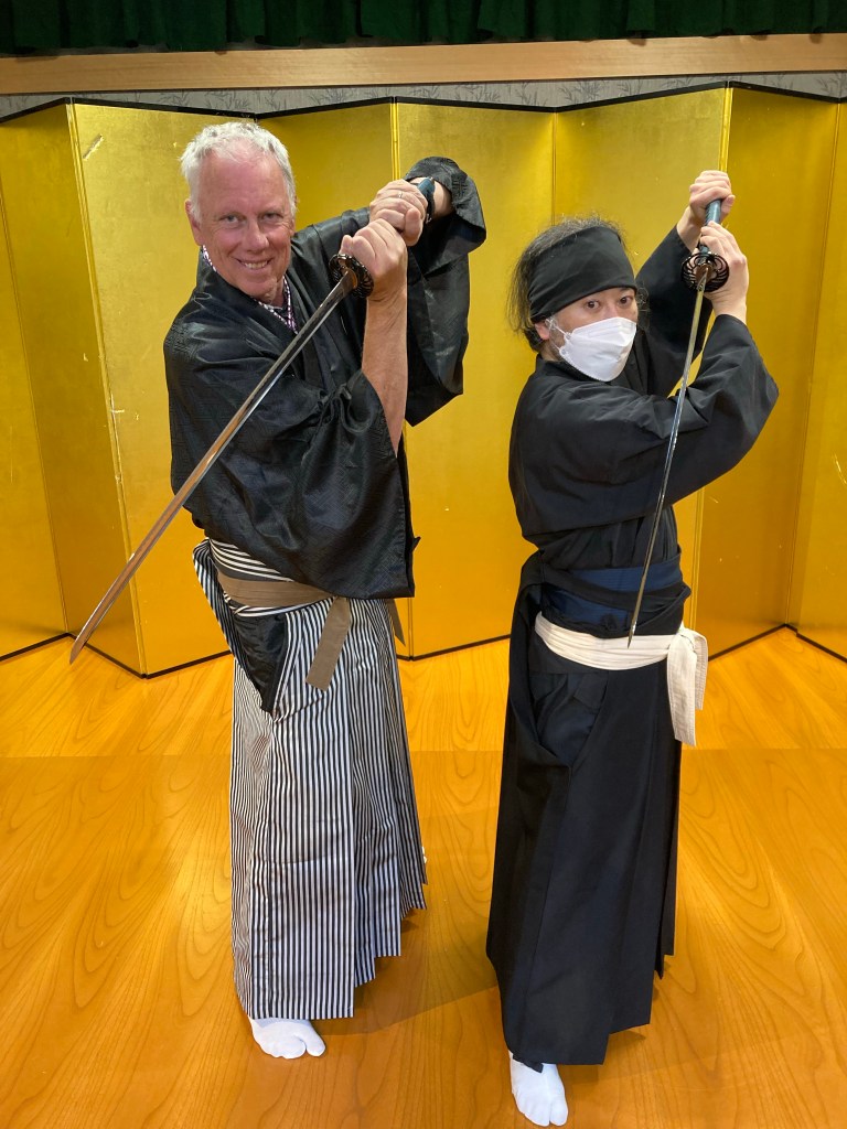 Both Mr and Ms X both remember the Japanese TV series from their childhood called SHINTARO. Whilst Ms X’s memories are more about trying to wrestle the TV from her brother, so she could watch The Patty Duke Show, Mr X loved coming home from school to try and emulate what those ninjas and samurais would get up to. It was only natural that Mr X should take a class to hone those early-childhood skills. No words are needed as the pictures tell the tale!