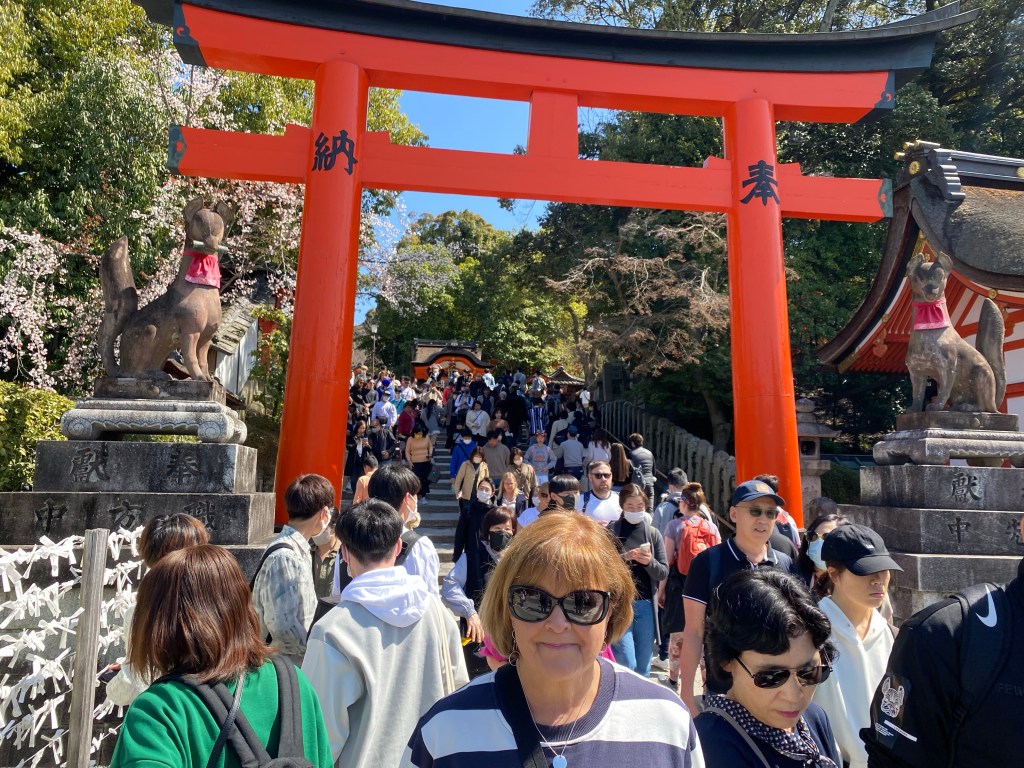 Now the problem with all those gates, is that everyone except our two spent all their time flicking hair, posing and generally holding up the line. This did not improve Mr X‘s relationship with torii gates.
