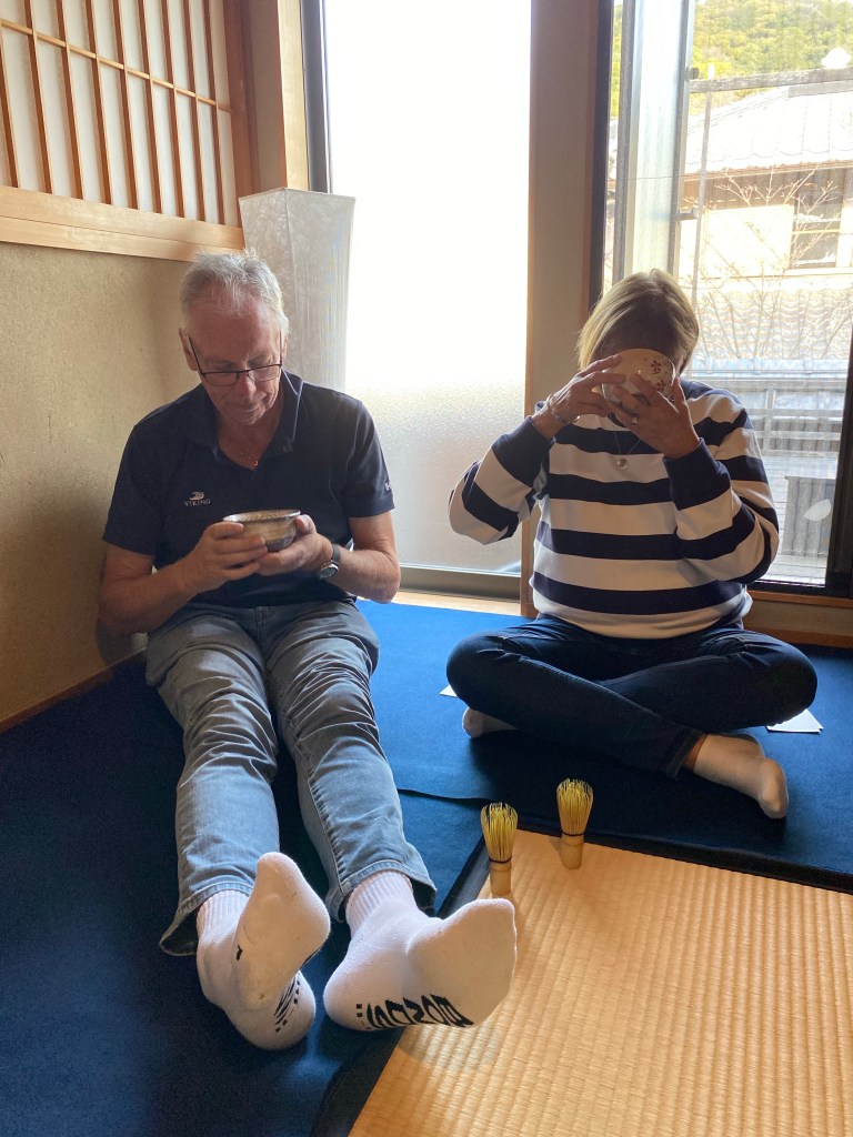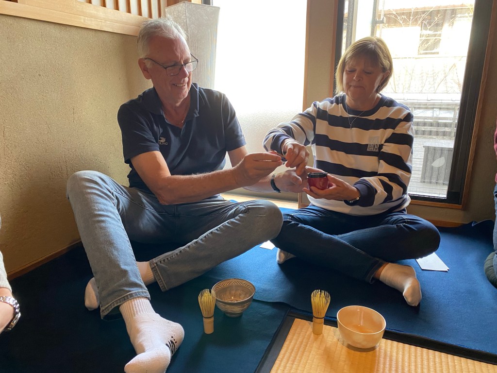 It was time for some Tea for these two and so off to experience a Traditional Tea Ceremony with their hostess Mia. How agreeable was Mr X you are thinking. Ms X wants to remind you that he does drink tea. It shouldn’t be a problem… well, except for the leg situation and the fact that there’s no milk or sugar for him.