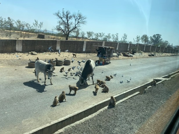The first observation was the traffic which would eventually rule their day. A 2 lane dual highway would often have 4 lanes of traffic each way. These could include cars, buses, tuk-tuks, motorbikes, cyclists and/or rickshaws. At any given time a cow might decided to have a rest in the middle of the lane. Along the road there might be more free range cows, monkeys, dogs or water buffalo. City or rural didn’t always exclude such visitors! Therefore a 200km bus trip might take up to 6hrs with these factors and also the fact that buses were restricted to 55kph.