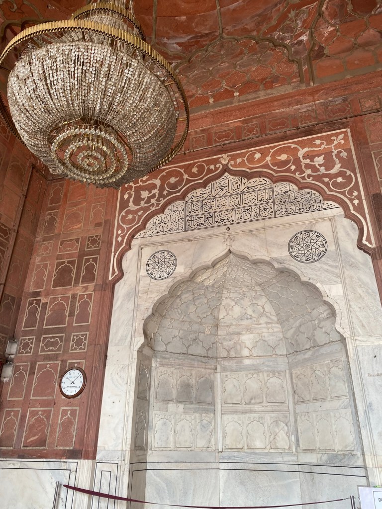 Below is ‘Jama Masjid’ (the largest mosque in India) was constructed of alternating vertical strips of red sandstone and white marble.