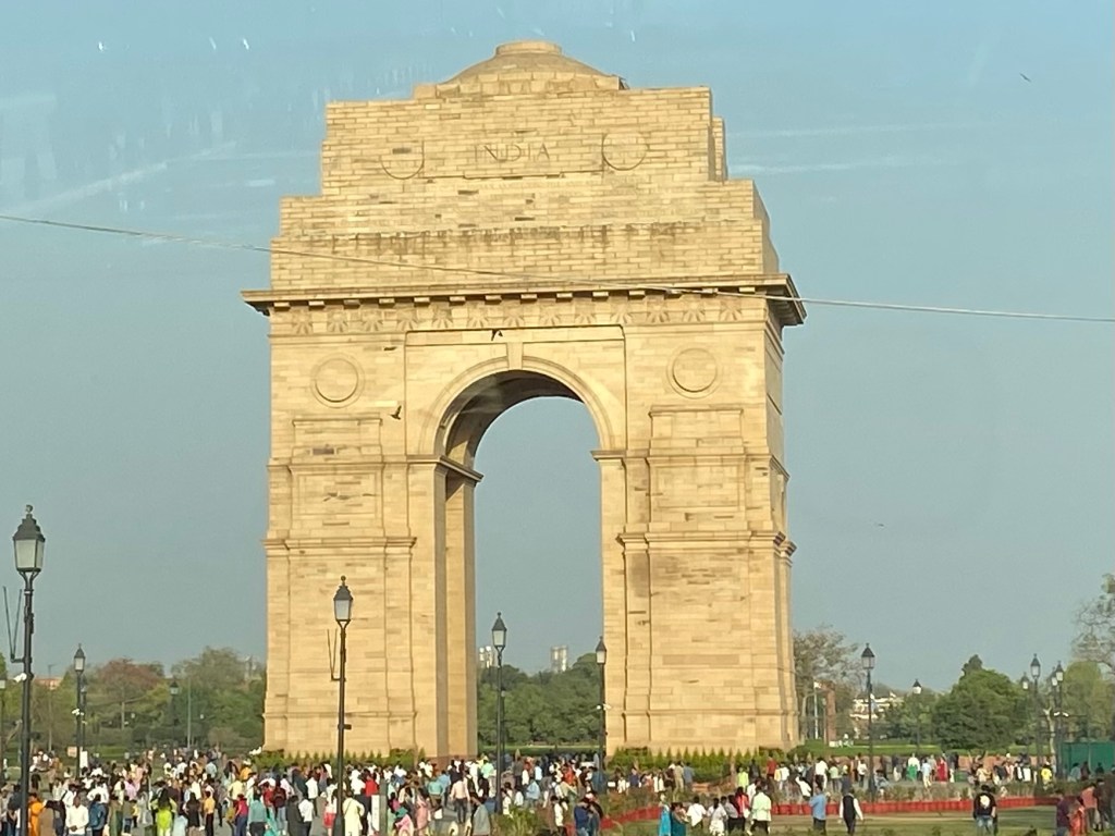 Welcome to India! Here’s the India Gate, a 42-metre high war memorial and stone of triumph.