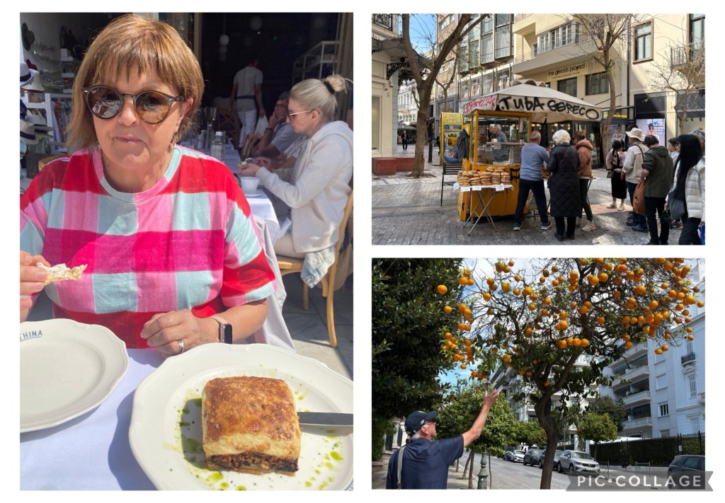 Off to the Plaka district that sits adjacent to the Acropolis, where memories of THE BEST MOUSSAKA was consumed many years ago by Ms X. Our travellers shared some moussaka (someone leaving the eggplant) and, although it was tasty, Ms X proclaimed that nothing would ever surpass her memories of her first!The travellers will not forget the street stalls selling fresh bread, the orange trees along the city streets and of course, mousakka!