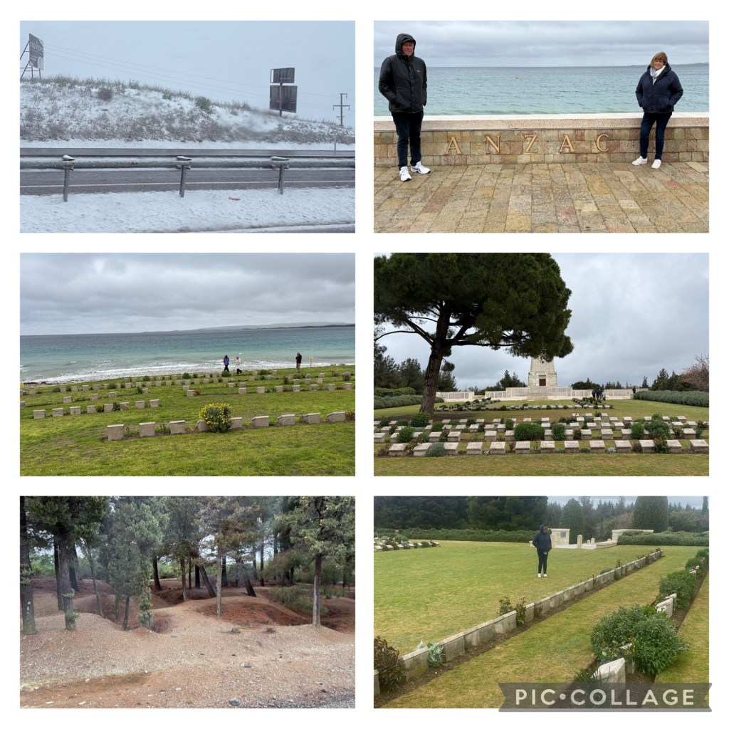 The journey there was a surprise with completely random snowfalls along the way. Despite falling temperatures, the group all reminded themselves of the Anzac spirit and pocketed their comments on the weather. The battlefields of WW1, Anzac Cove, Chunuk Bair Memorials, The Nek, original tunnels and trenches and the Lone Pine Cemetery were all visited. It was quite an emotional experience for all.